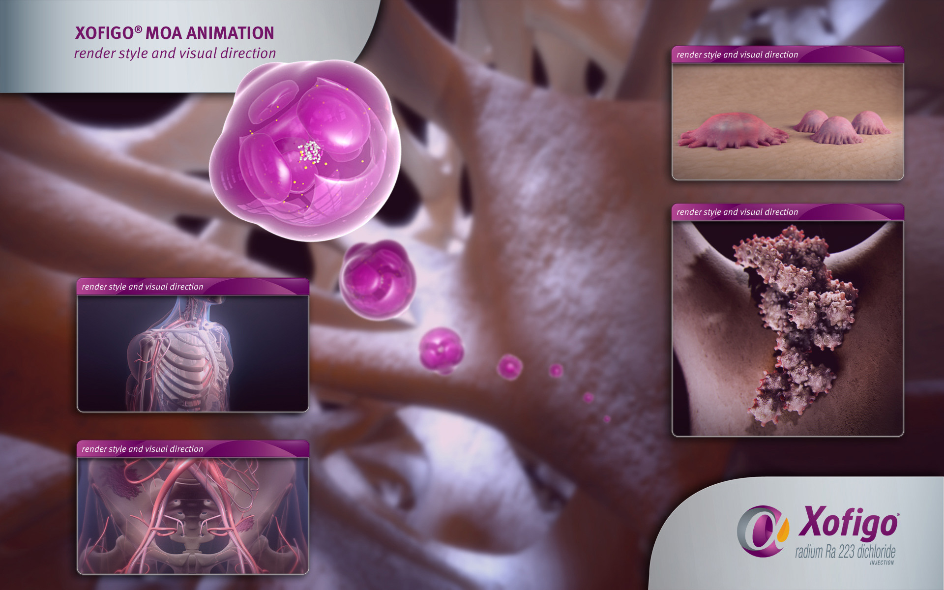 Below are a selection of frames from the US specific Xofigo MOA Animation